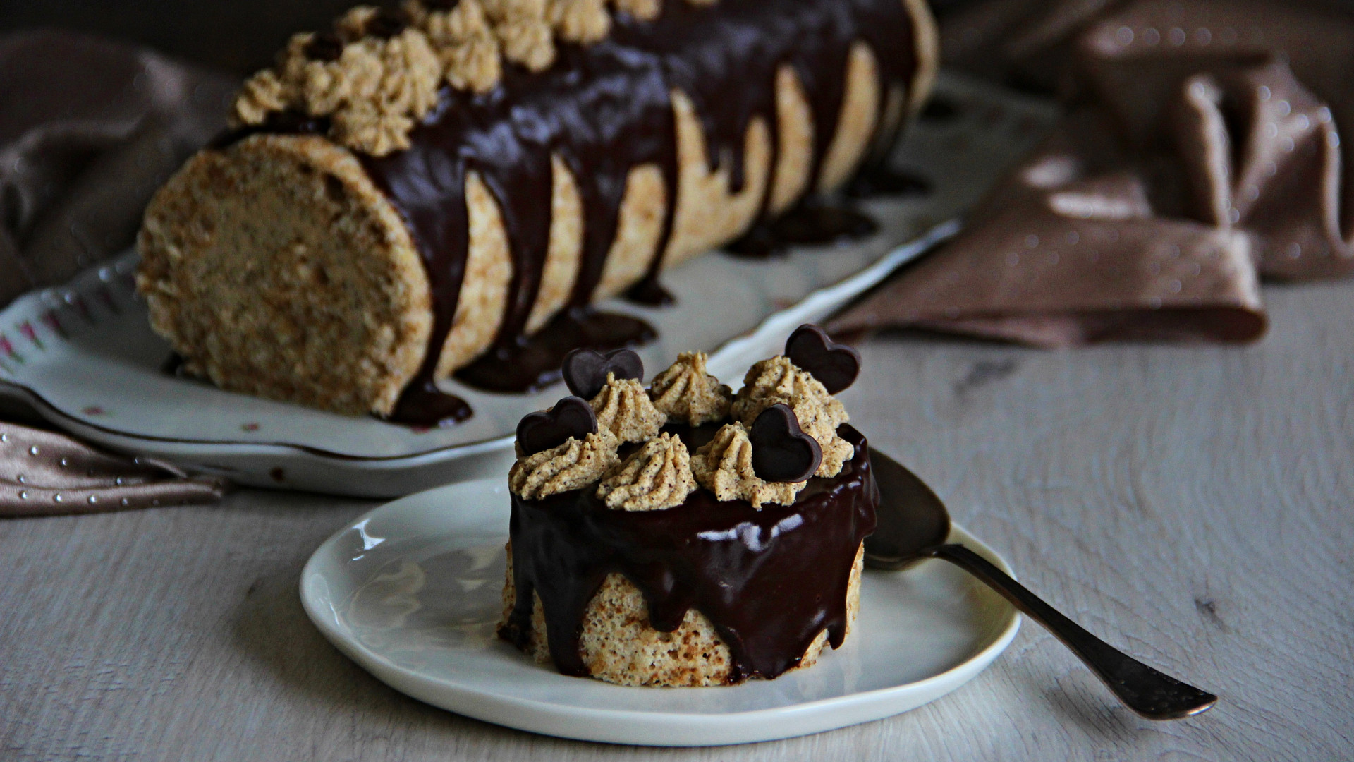 - Roládu buď nakrájejte na úhledné řezy, nebo na širší plátky, polijte je polevou a nazdobte zbylým krémem. Vzniknou tak krásné malé dortíky.