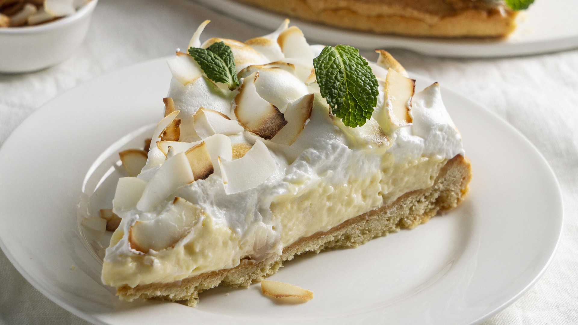 Tento koláč vyžaduje dvojí pečení. Nejprve musíte upéct korpus z listového těsta s krémem a teprve potom navrstvit sněhovou peřinku a koláč dopéct při nižší teplotě.
