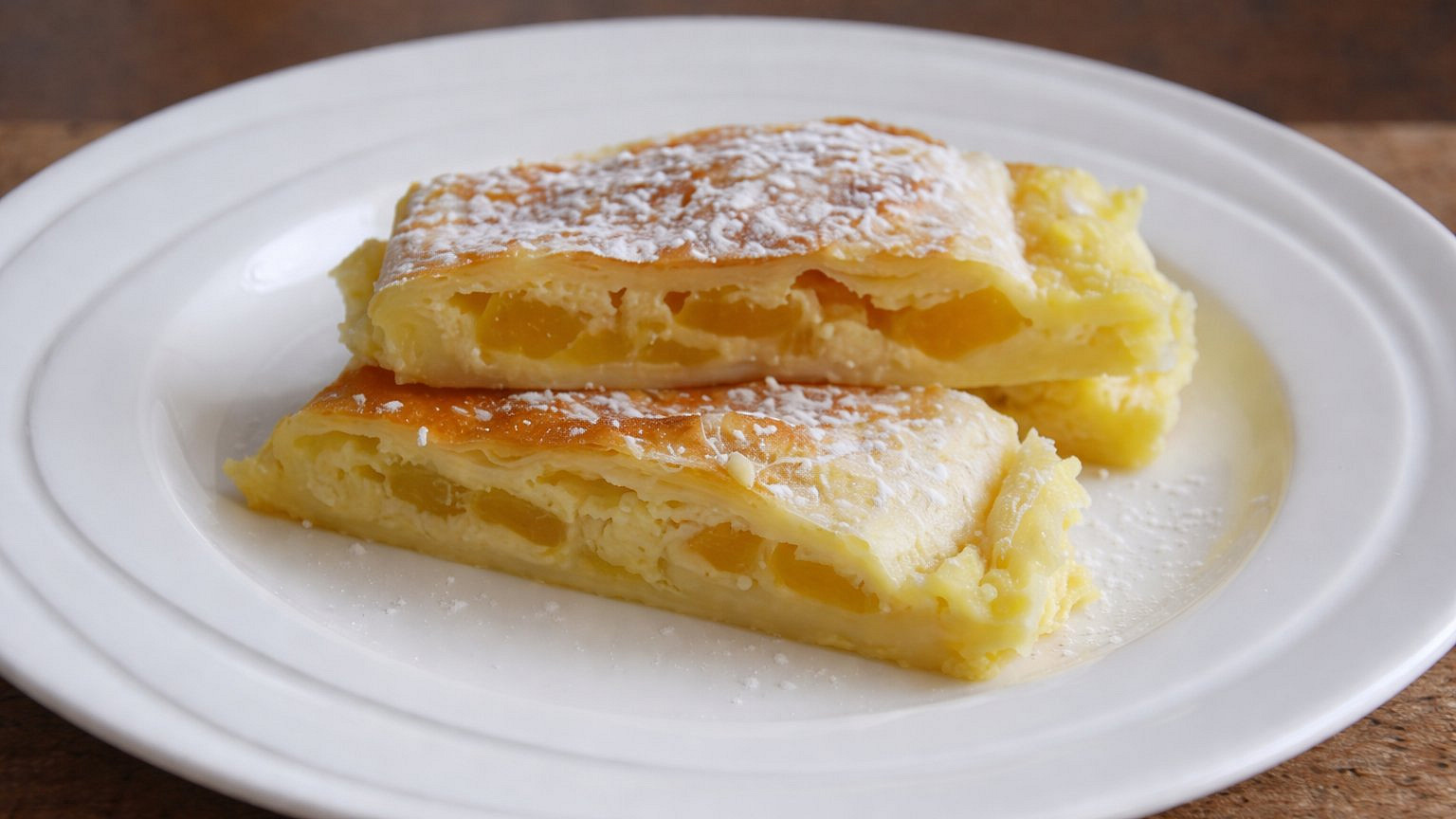 Úžasný pudinkový štrúdl bez kynutí: Voní vanilkou a hruškami, příprava je snadná a hotový ho budete mít během chvíle