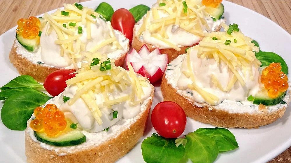 Vajíčkové chlebíčky s tatarkou a sýrem