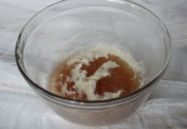 ¼ šálku ovocné šťávy smíchané se šťávou z limetek zalijte želatinu a nechte chvilku odstát. V malém hrnci smíchejte zbývající ¾ šálku ovocné šťávy s cukrem a za stálého míchání vařte na mírném ohni, aby se cukr rozpustil. Jakmile směs dosáhne bodu varu, odstraňte ji z tepla, nalijte do misky se želatinou a důkladně promíchejte.