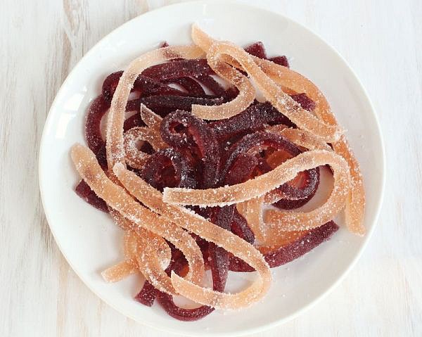 Tento recept je naprosto úžasný tím, že můžete měnit druh používané ovocné šťávy, a tím i výslednou příchuť želé bonbónů. Jejich příprava je velmi jednoduchá, ale vyžaduje určité zkušenosti, především je třeba správně odhadnout poměr tekutin a želatiny. Pokud se vám želé bonbóny rozpadají, přidejte příště více želatiny; pokud jsou naopak příliš hutné, množství želatiny uberte. Jistě brzy dosáhnete perfektního výsledku a užijete si chutné mlsání.