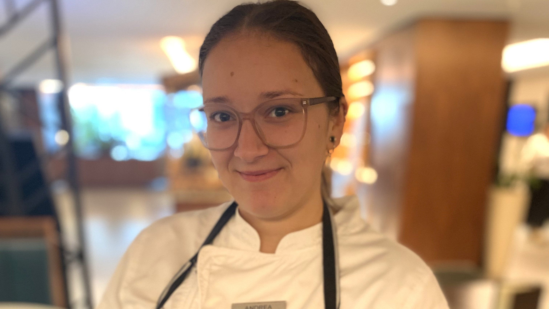 Našla ho v restauraci The Artisan pražského hotelu Prague Marriott. „Líbil se mi klid a přímé jednání šéfkuchaře Davida Rejhona a jeho filozofie zero waste. Přemýšlí o každé surovině a hledá cesty, jak ji celou zužitkovat a dostat z ní maximum chuti. To mě oslovilo, stejně jako to, že na střeše hotelu chováme včely a jejich med můžeme používat do dezertů,“ usmívá se Andrea.