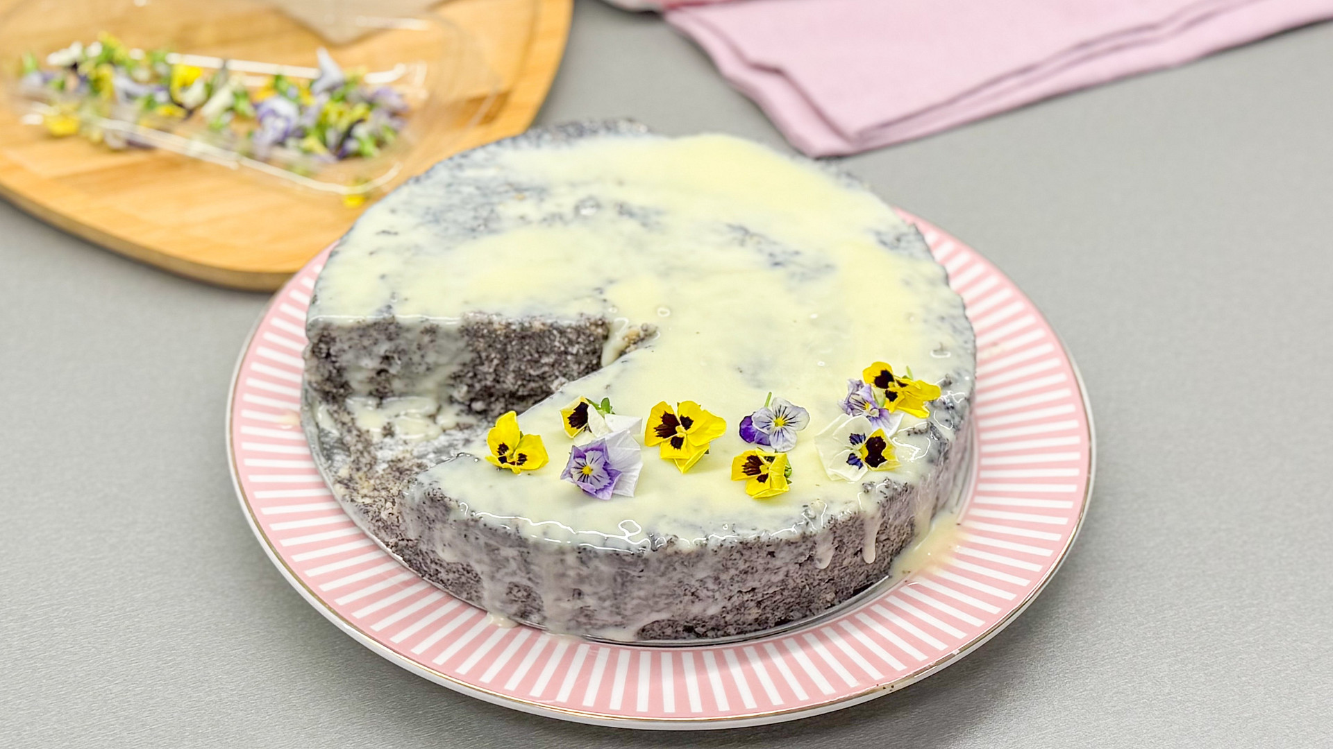 - Hotovou polevou přelijte koláč a nechte jej v lednici vychladit nejlépe přes noc. Před podáváním jej ozdobte jedlými květy nebo dle vlastní fantazie.