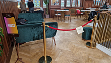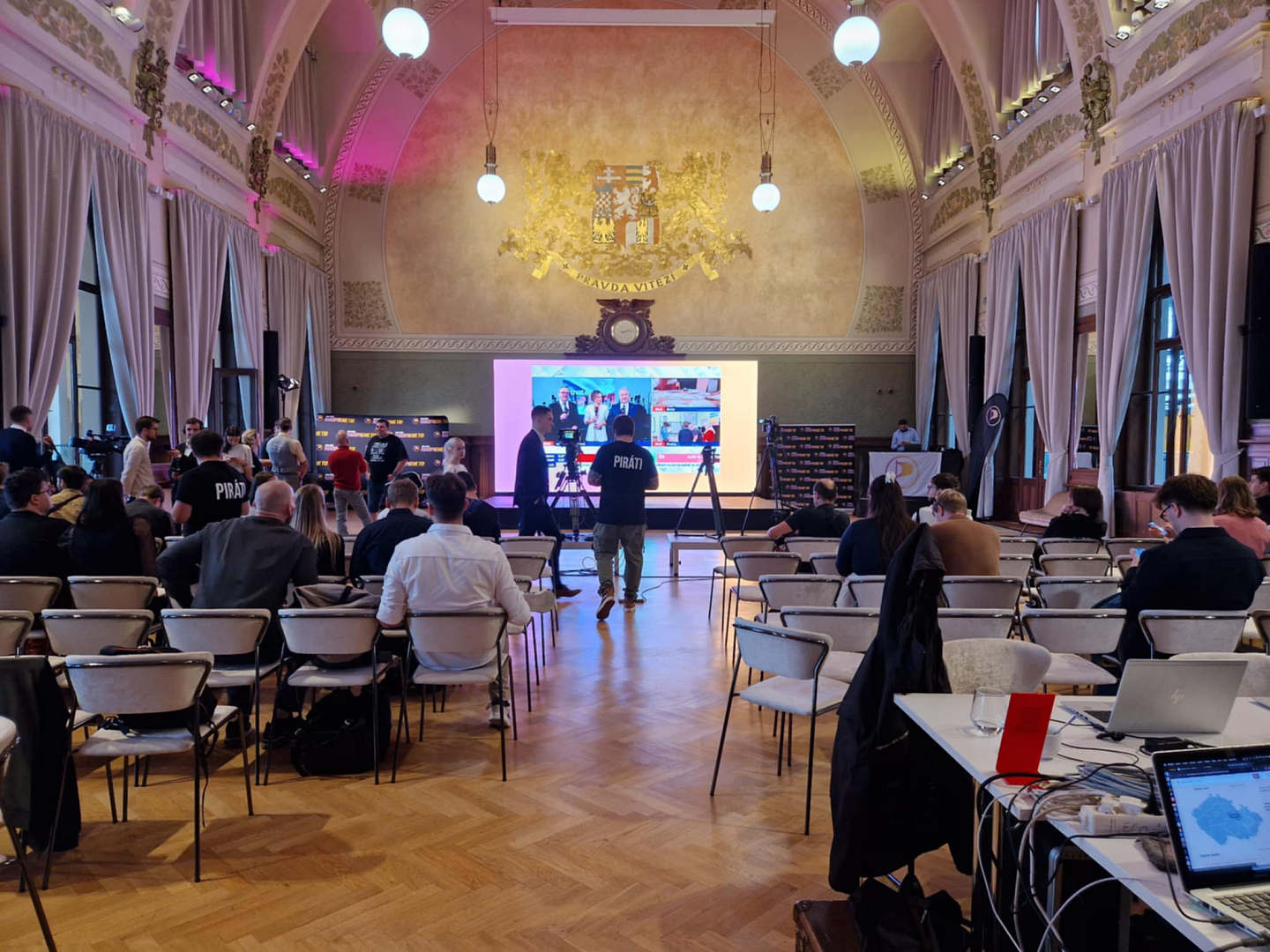 Volební štáb Pirátů v krásné zrekonstruované části Hlavního nádraží.