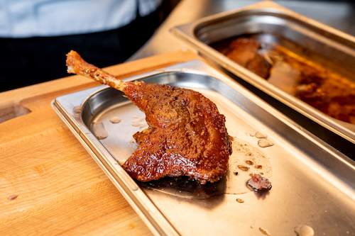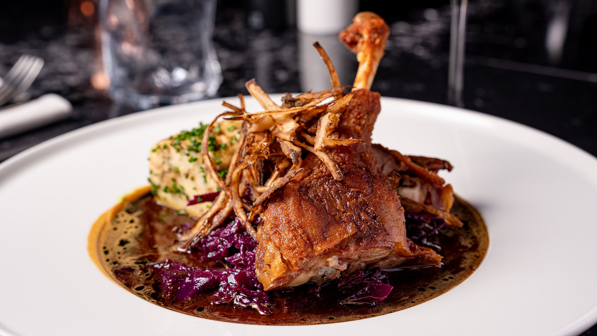 Recept na Svatomartinskou husu konfitovanou ve vlastním sádle s husím vývarem podle Karla Caldra, šéfkuchaře Fly Vista