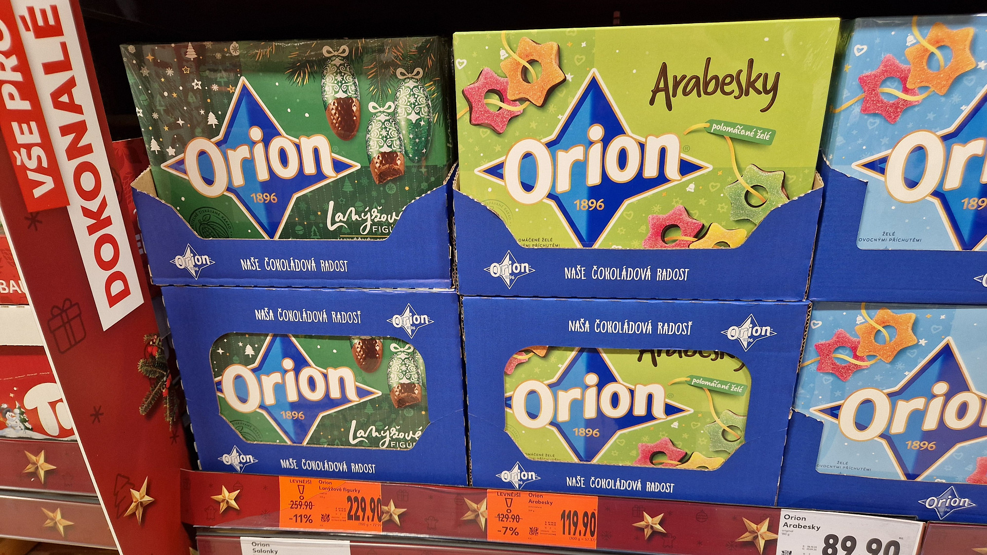 Nejinak je to i u červené kolekce od Orionu, kde místo loňských 362 g čekejte jen 351 g a zvýšení ceny za 100 g z 82,85 Kč na 91,14 korun. Kromě ceny se tedy zkuste podívat i na celkovou hmotnost produktu, ale nelze předpokládat, že si zrovna tuto hodnotu od loňska většina zákazníků pamatuje.