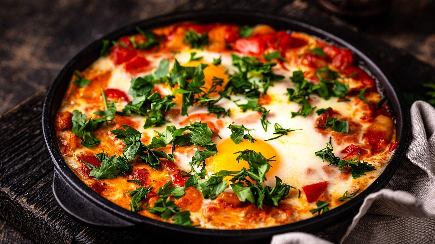 Podobně jako maďarské lečo se i tuniská shakshuka skládá hlavně z rajčat a paprik a přidává se do ní vajíčko. Ovšem chutná a voní úplně jinak, po česneku a orientálním koření.
