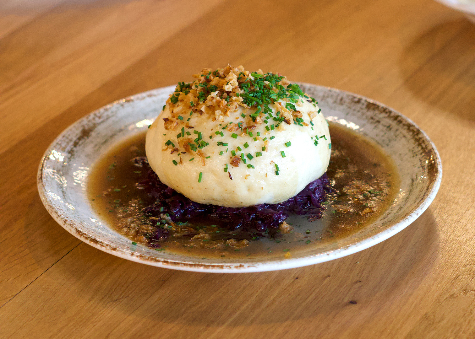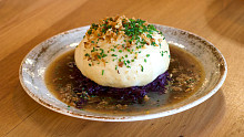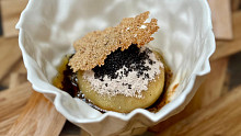Jak dezert mají ve 420 kynutý knedlík plněný švestkovými povidly s nakládanými sušenými švestkami v portském víně s krémem ze zakysané smetany, mákem, cukrem a oříškovým máslem. Zdroj: se souhlasem restaurace 420