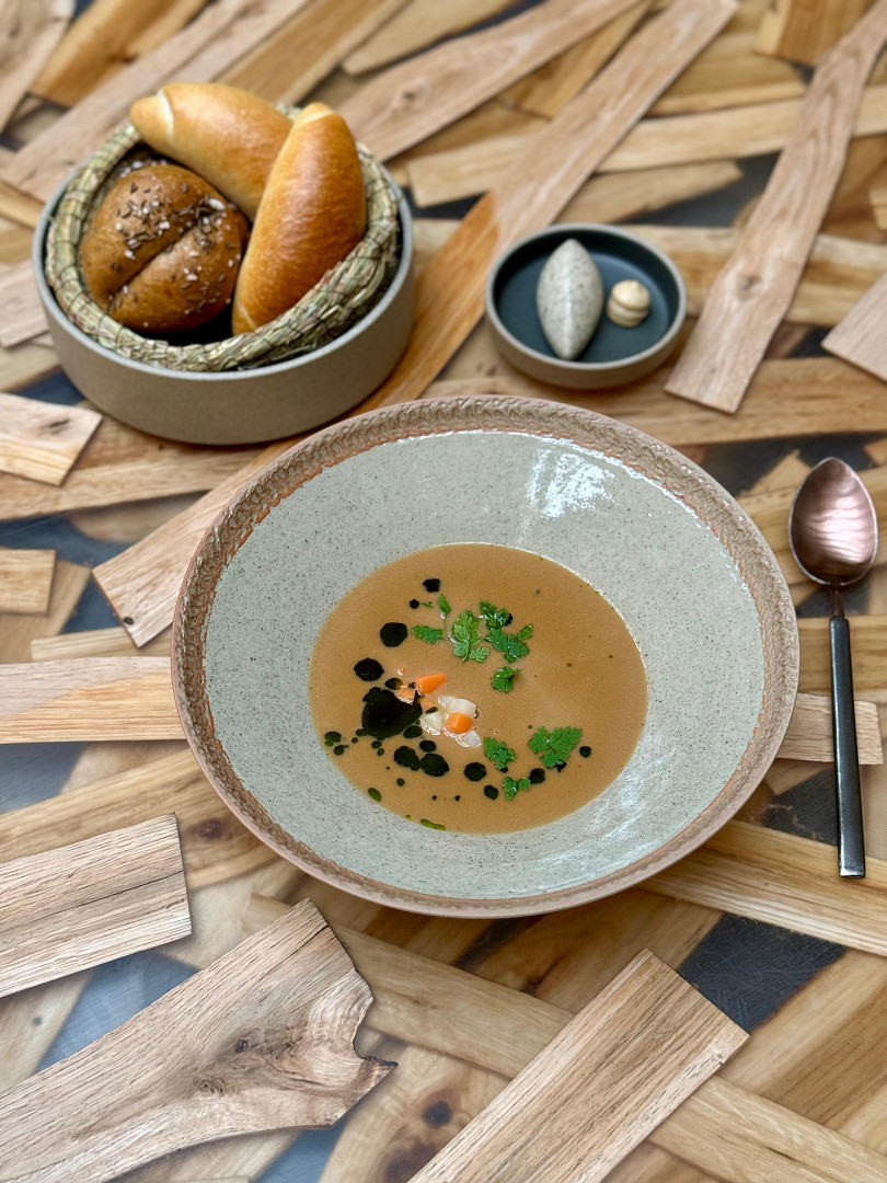 420 nabízí krémový kaldoun s husími droby, kořenovou zeleninou a flíčky s libečkovým olejem. Zdroj: se souhlasem restaurace 420