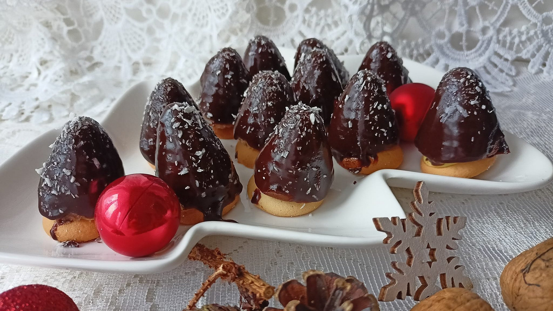 - Ztuhlé úlky namáčejte do rozehřáté čokoládové polevy a ozdobte kokosem nebo cukrovým zdobením.