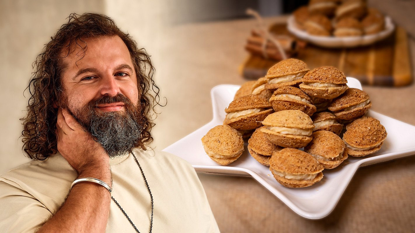 Plněné ořechy patří k těm lepším druhům cukroví. A cukrář Josef Maršálek je dělá ještě luxusnější. Neplní je totiž obyčejným máslovým krémem, ale jablečným karamelem, jenž se báječně hodí k ořechům, které v těstě samozřejmě nesmí chybět.