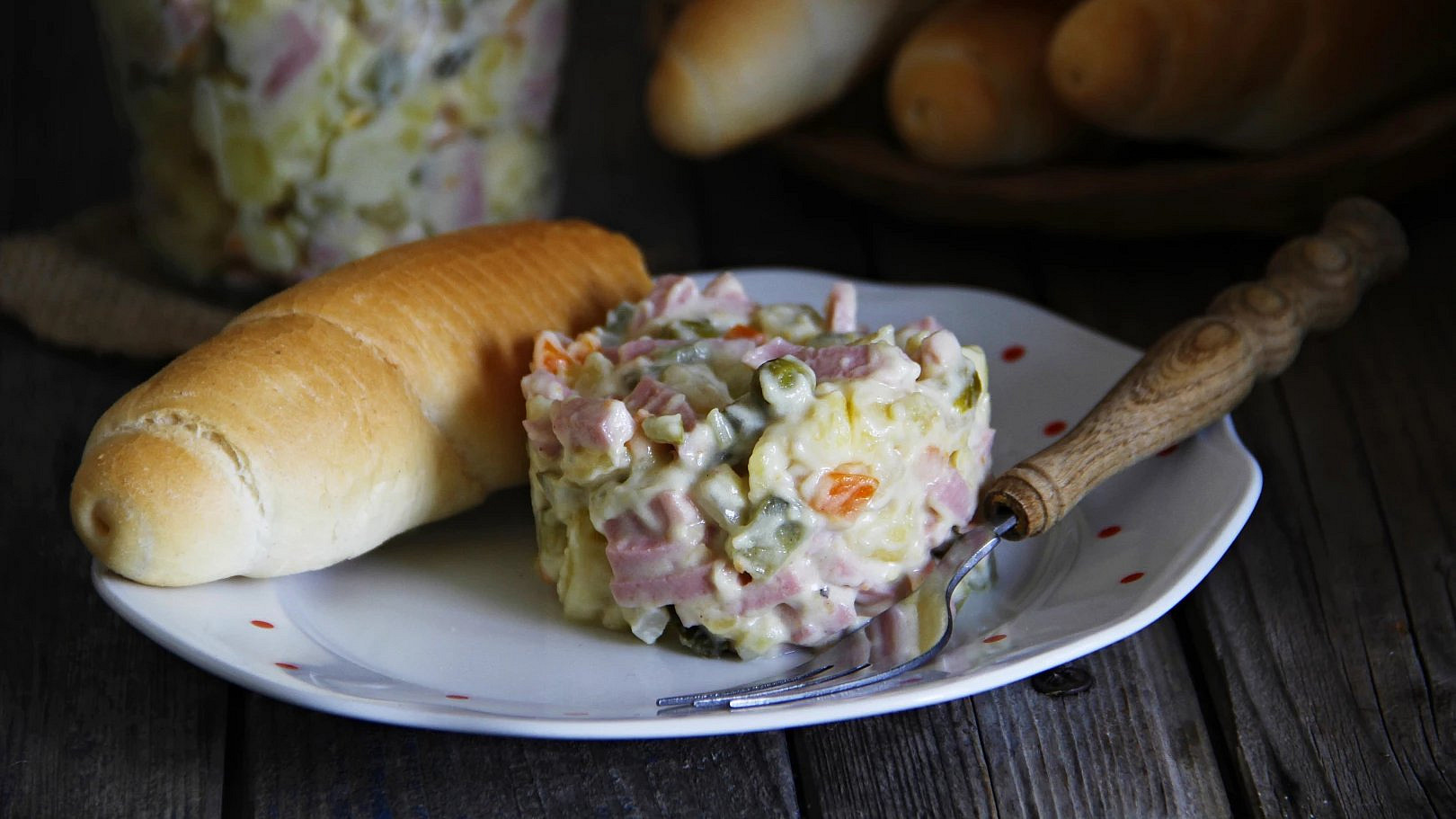 Typickým znakem tohoto populárního salátu je jeho univerzálnost. Brambory mohou být vařené i pečené, hrášek lze nahradit sterilovanou kukuřicí, případně můžete použít směs sterilované zeleniny. Šunku můžete vyměnit za krůtí či kuřecí maso, pokud máte k dispozici zbytky z předchozího vaření. Nevadí ani kombinace několika druhů uzenin, pokud zrovna potřebujete spotřebovat menší množství od každého. Chutnou majonézu lze částečně zaměnit za jogurt nebo zakysanou smetanu, což salát odlehčí.