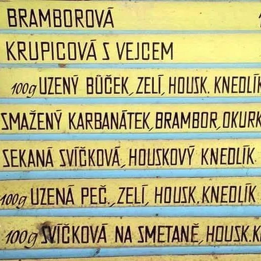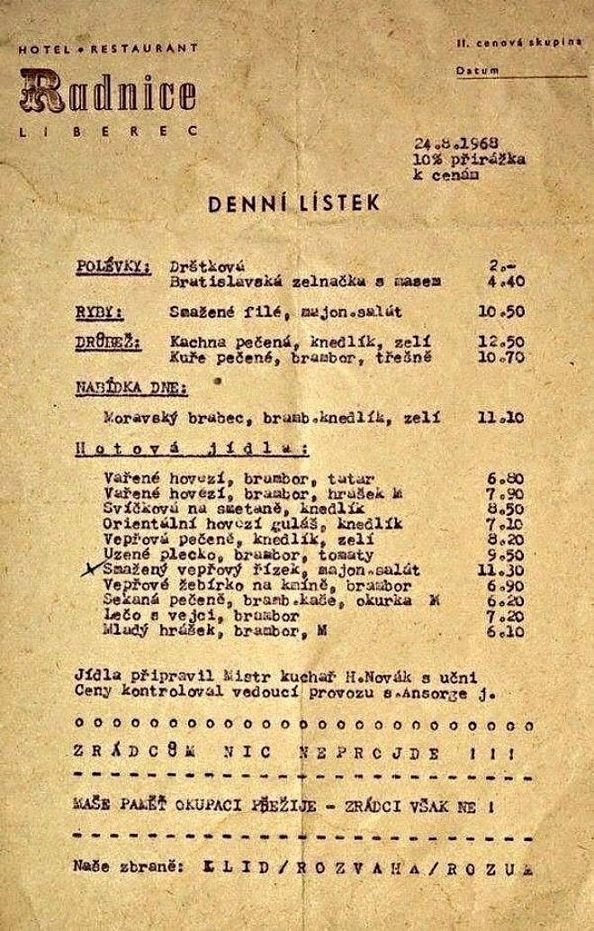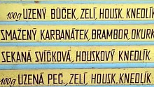 Domů - Magazín - Historie a zajímavosti - Jídelní lístek z roku 1974: Smažený řízek stál 9,90 Kčs, okurkový salát byl za 1,50 Kčs a nejdražší biftek s vejcem za 13 Kčs