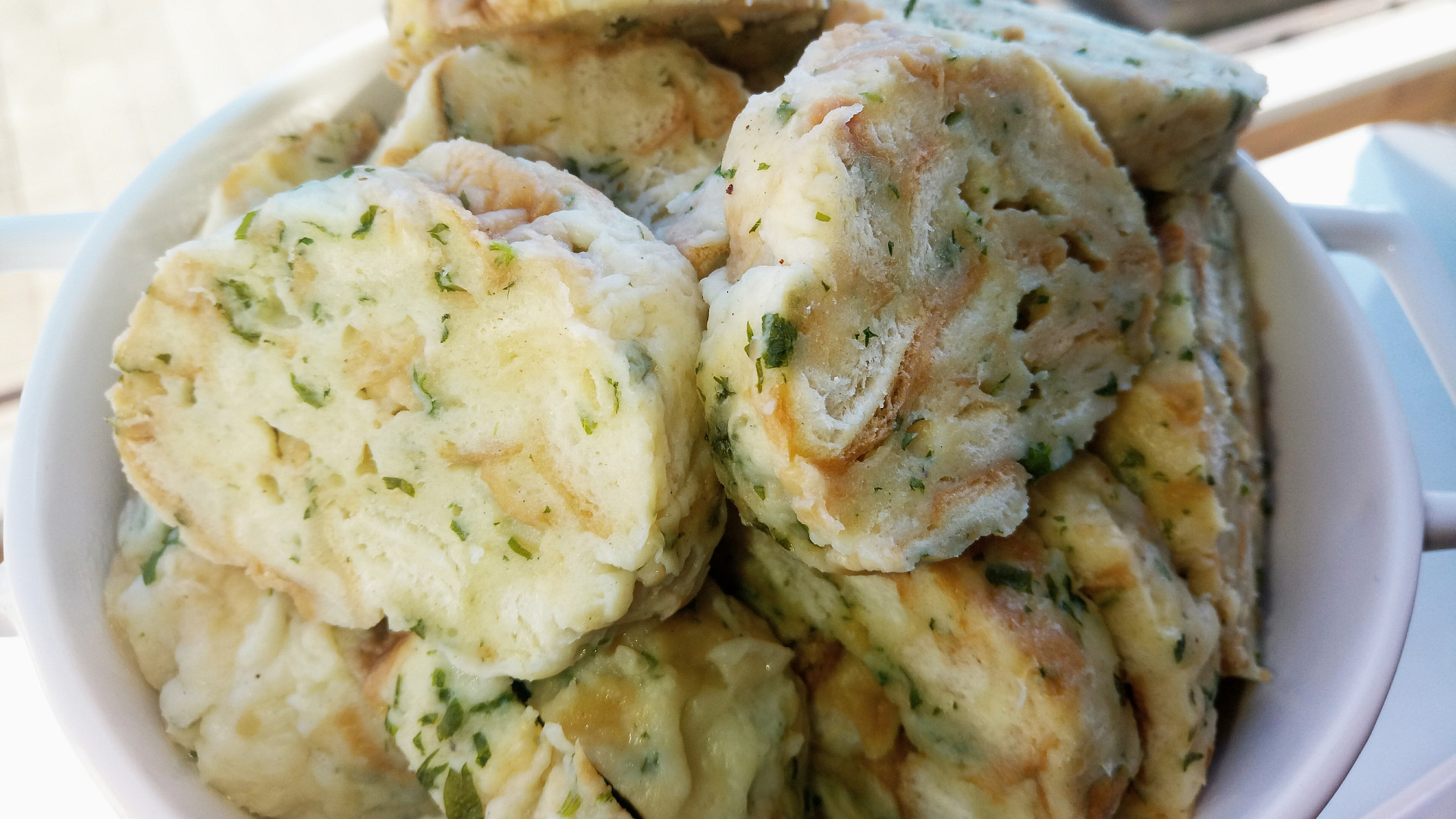 Jsou citlivější na vysušení. Nejlepší je opět pára nebo ohřev přímo ve vroucí vodě – stačí 1–2 minuty, aby se prohřály. Nakrájené plátky bramborových knedlíků můžete také lehce potřít máslem a opatrně ohřát v zakryté pánvi na mírném stupni. - Karlovarské knedlíky