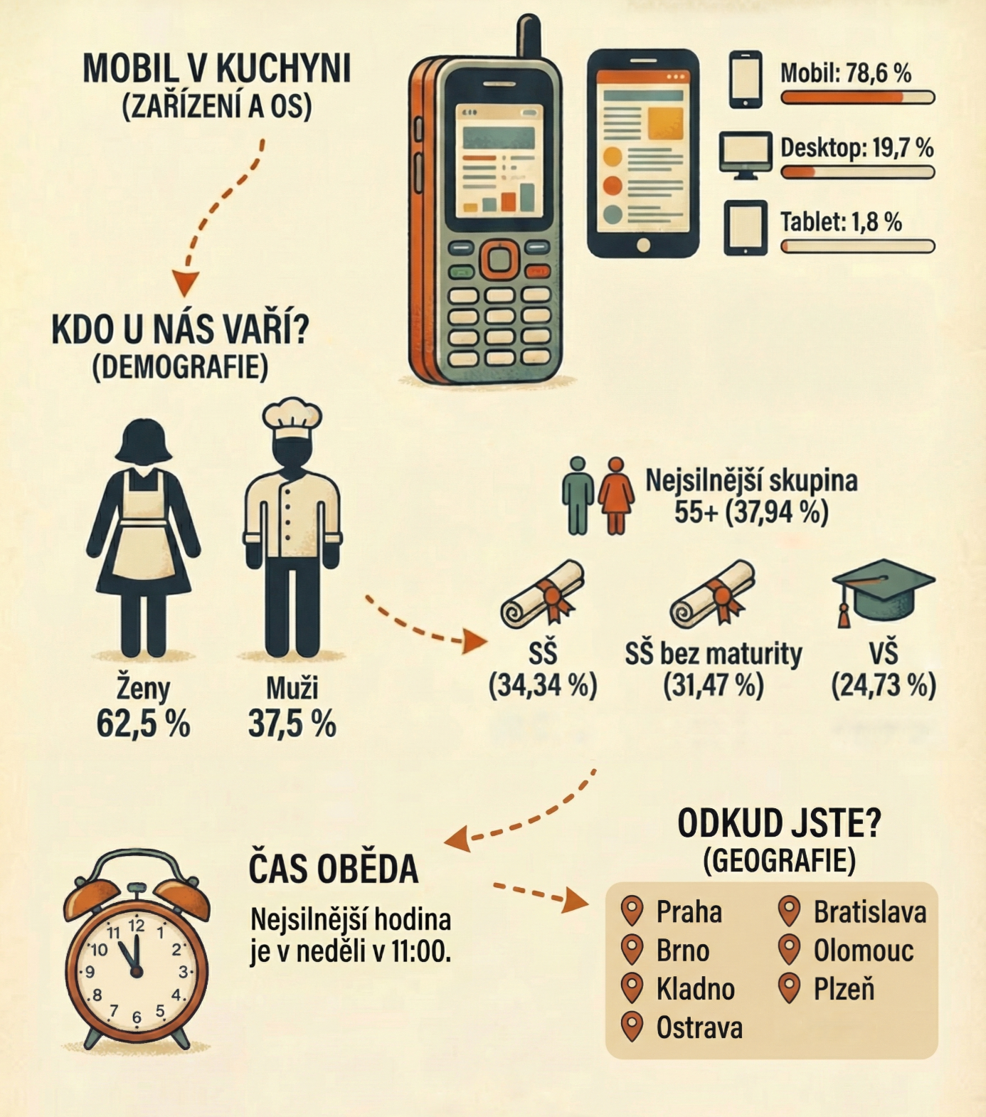 Pojďte se s námi dnes podívat pod pokličku a zjistěte, které recepty jsou v celé České republice nejúspěšnější, s kterými surovinami se v českých kuchyních nejčastěji pracuje, nebo co ve vaření spojuje Brno a Plzeň.