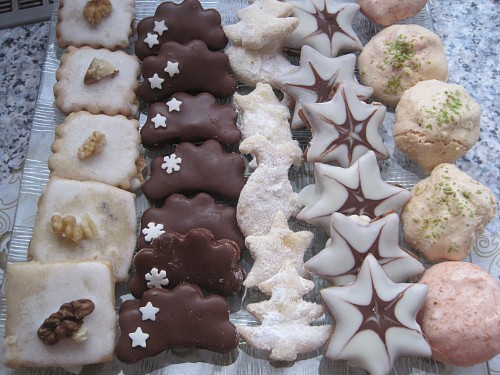 Např. pečené jsou vanilkové rohlíčky, linecké cukroví, pracny, ...