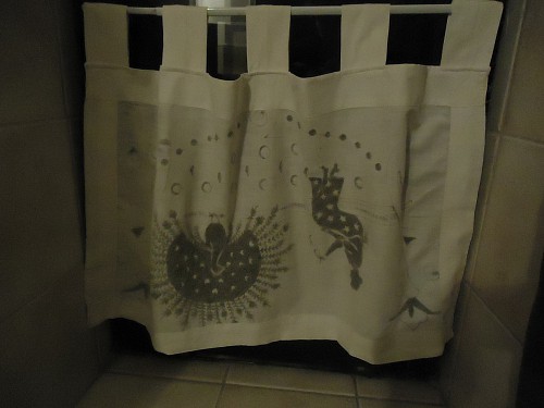 Jen vydolovat šicí stroj ze skříně je složitější než samotné šití, ale odhodlaně jsem se do toho dala. Ušila, přemydlila žlučovým mýdlem, přihodila do pračky, usušila, vyžehlila, pověsila, moc se mi to líbilo. Když jsem koukla pořádně, zjistila jsem toto