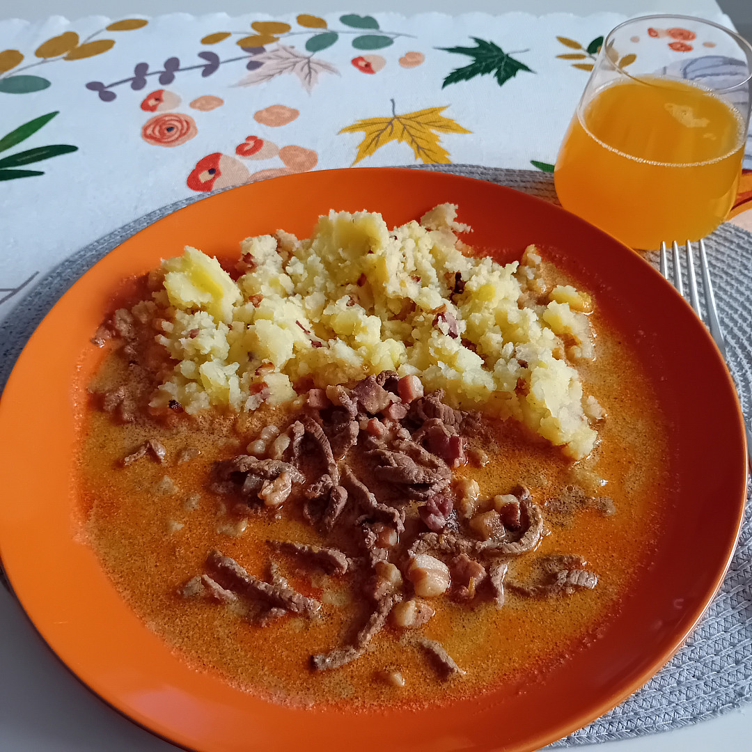Dnes už jsem vařila. K obědu omáčku s hovězím masem podle TOP receptů a šťouchané brambory. Odpoledne jsem upekla čokoládový fondán s pekanovými ořechy.