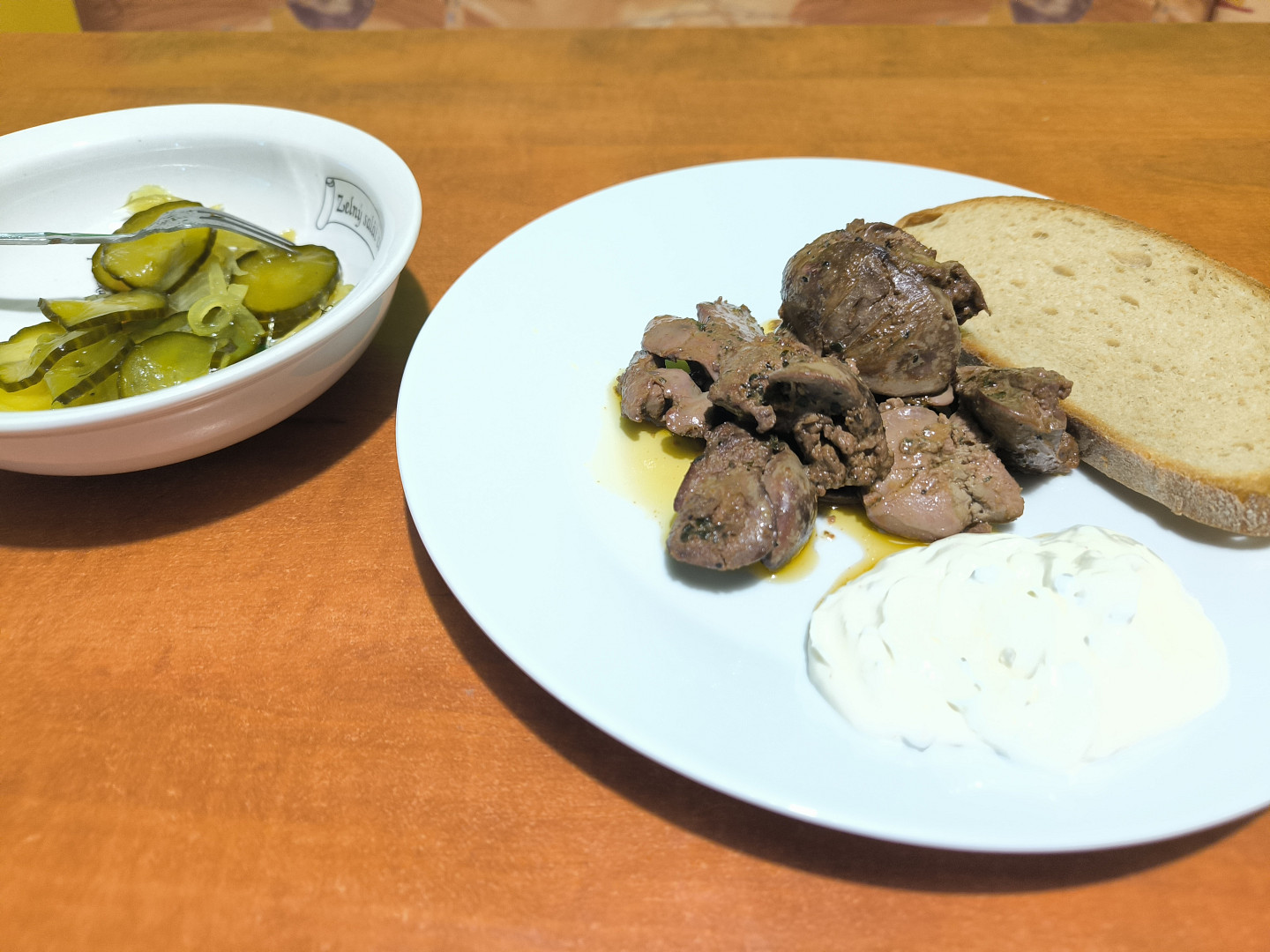 U nás byl včera uzený hovězí jazyk s br.kaší a okurkový salát, dnes opět jazyk, ale se šťouchaným bramborem a znovu okurkový salát. A večer bude ještě pstroužek na másle, kterého včera Petr chytil.
