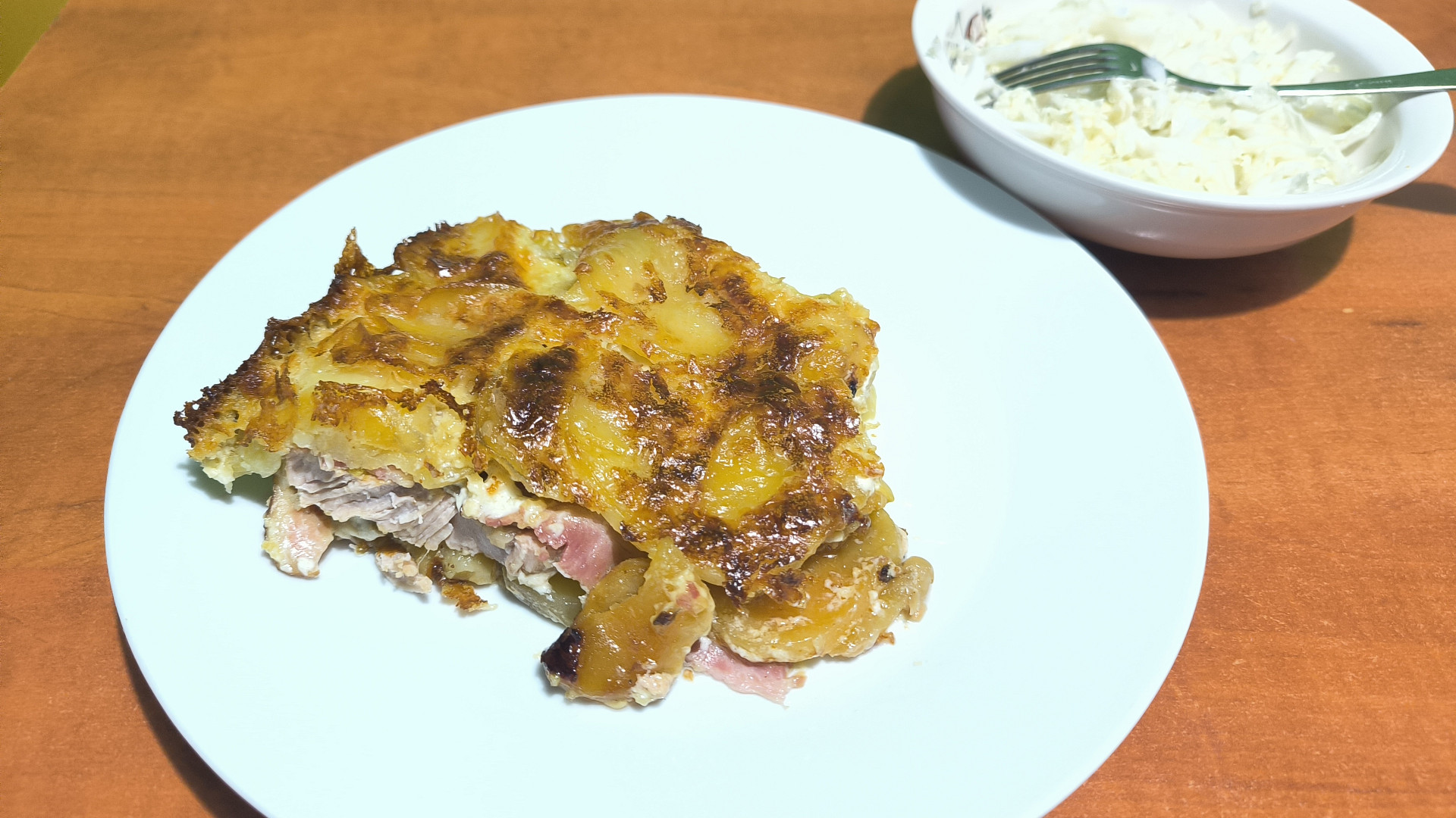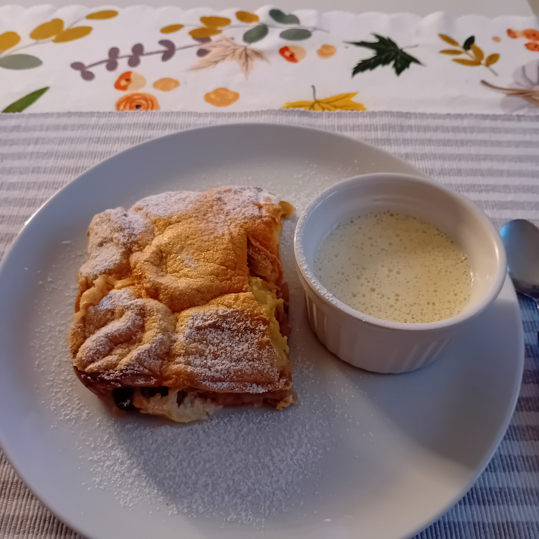 Dobré odpoledne všem, my jsme dnes měli luxusní jablečnou žemlovku. K večeři bude vinná klobása.