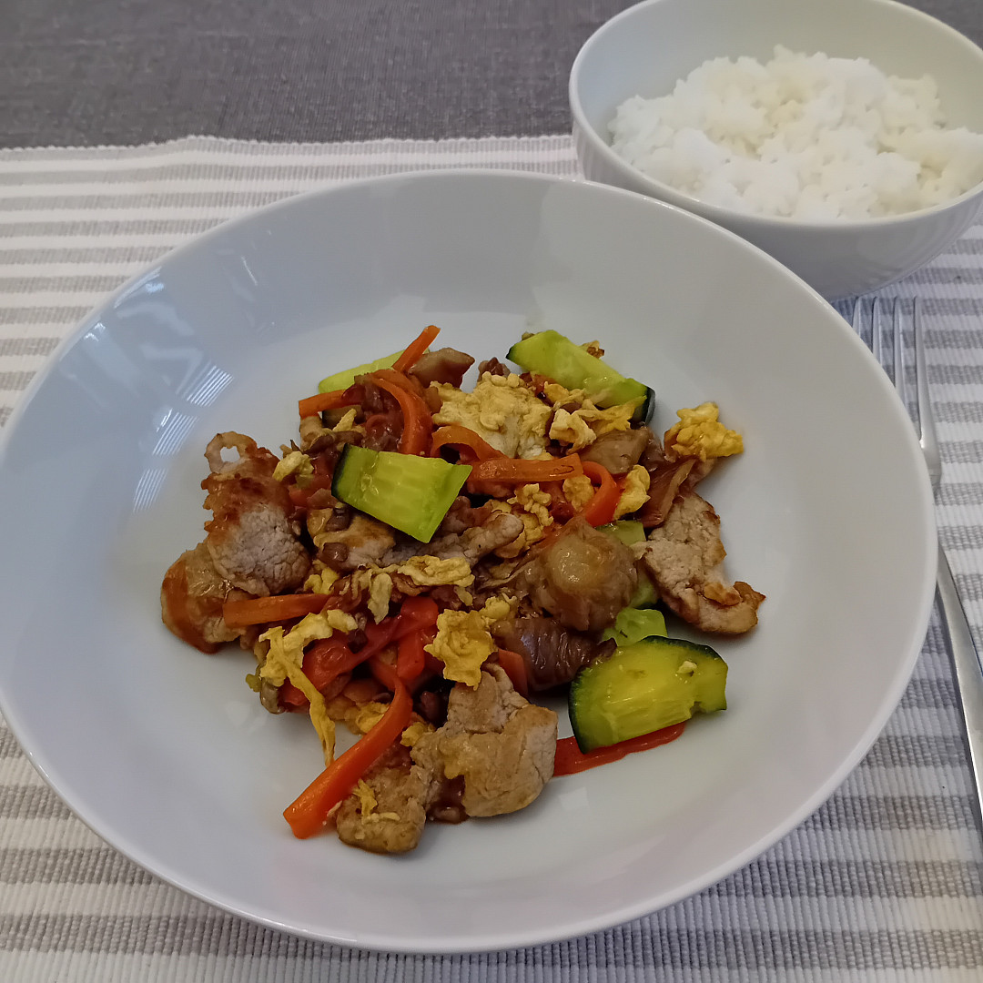 Dnes vepřové moo shu a jasmínová rýže. Teď jdu péct vanilkové rohlíčky.