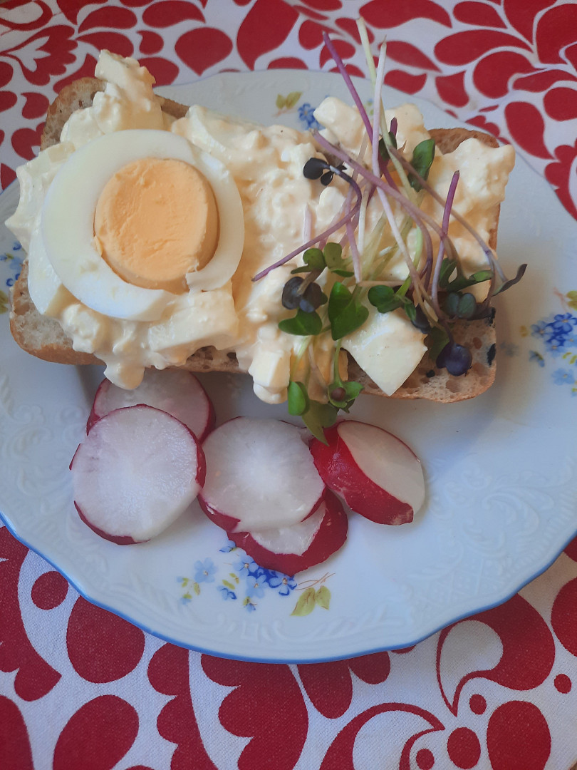 K večeři namažu na veku vaječnou pomazánku s Gerwais s medvědím česnekem a pažitkou.