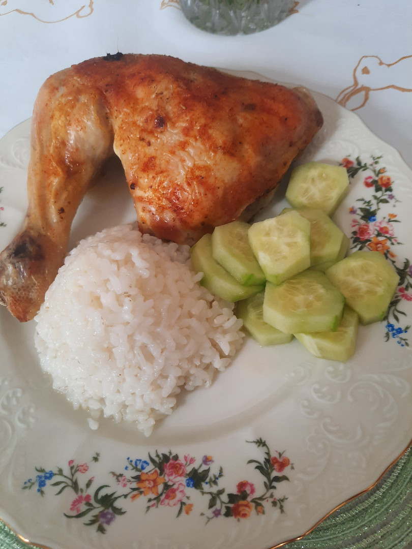 Takže pečené kuře (bez prsou) obvykle máme na dvě jídla - na první jídlo má Petr biskupa a 1 křídlo a já také 1 křídlo a ještě oberu kosti ze hřbetu; někdy si přidáme i kousek stehýnka. Na druhé jídlo sníme stehýnka.