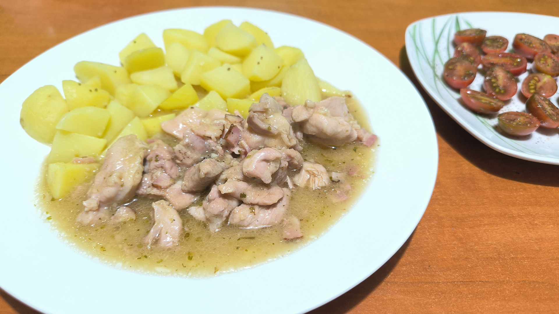 Včera jsme měli vinnou klobásu s br.kaší a Petr dnes dojí zbytek. Zítra jede na chatu, tak sebou chce upéct kuře na medu. Dnes koupil kuřecí skelety, tak si sebou poveze i polévku. A já si snad konečně udělám zadělávaný hrášek, který mám už chvíli v mrazáku.