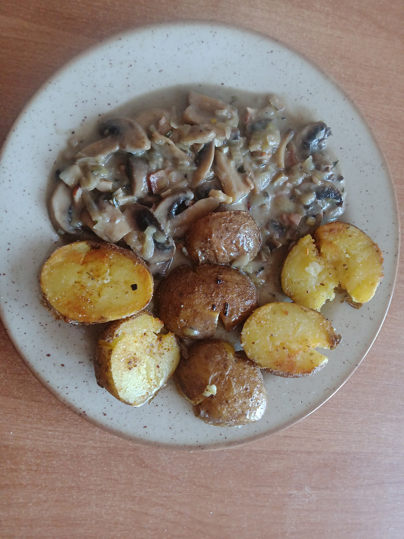 Upekla jsem nadívané křepelky a protože by je Vendula ani děti nevzaly do ruky, upekla jsem ještě krůtí palice, které jsem po upečení vykostila a nádivku co zbyla jsem ještě upekla zvlášt v pekáčku., k tomu vařený brambor a salát little gem😘,