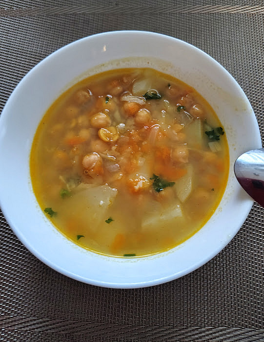 u nas cizronova polevka a topinky, spenatove smoothie a upekla jsem ovesne muffins s malinami.😉