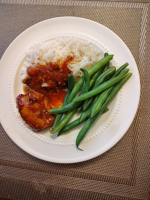 u nas tropicke kuratko s ryzi a zelenymi fazolky. Upekla jsem muffins, ale dala jsem temer vsechny vnoucatum.