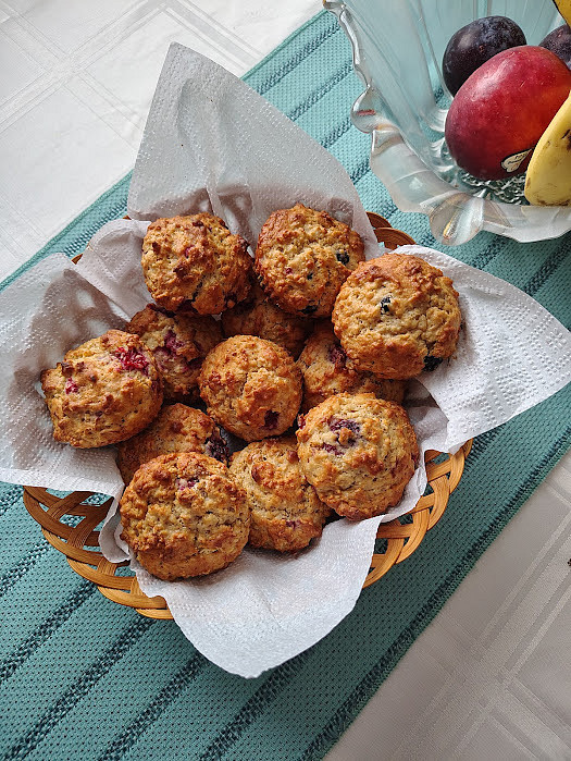 u nas dnes pikatni polevka z cervene cocky, vecer budou testoviny s vajickem a slaninou, zeleny salat. Upekla jsem malinove a boruvkove muffins.