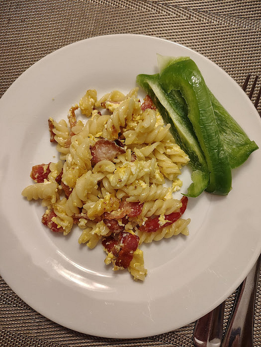 vcera jsme meli chillys cesnekovym chlebem, spenatove smoothie, dnes jen testoviny s vajickem a spekem, a zelenou paprikou. Premyslim co upecu,ale zatim jsem jen u receptu,tak nevim jak to dopadne.