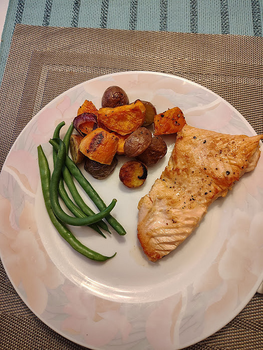 u nas dnes losos, pecena zelenina a zelene lusky. Spenatove smoothie.