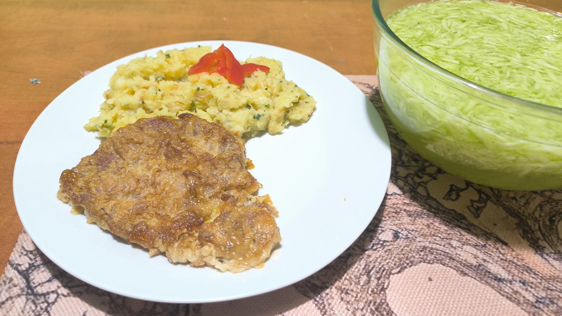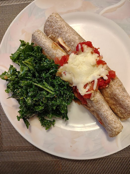 dnes u nas zbytek polevky od vcera, zapecene tortillas s mletym hovezim masem, salsa na vrchu a mozzarela. Kaderavkovy salat. Desert jeste svestkovy kolac.