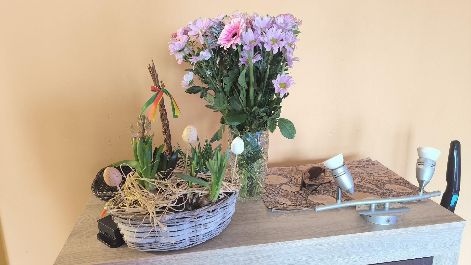 Vendula udělala košík na velikonoce. Dala jsem ho na balkon, snad vydrží 😁.