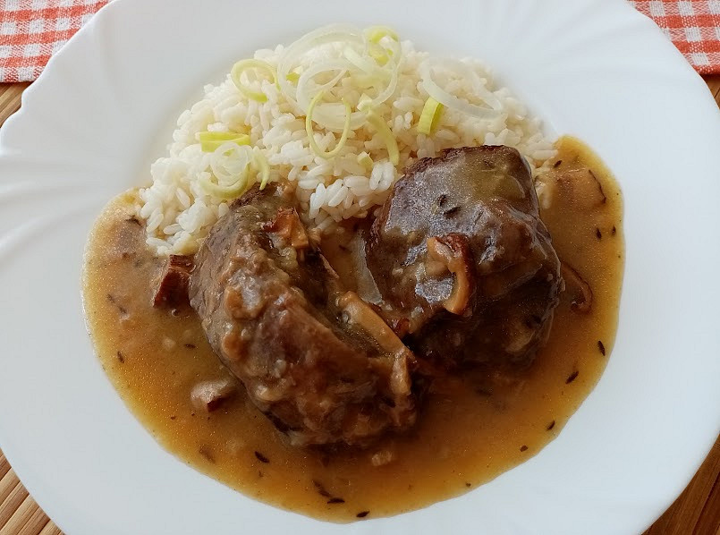 U nás byl trošku náročnější týden(opět od kamarádky malý Alexík) a tak dnes,po dojídání"zbytků"byl hovězí krk na špeku a kmíně.