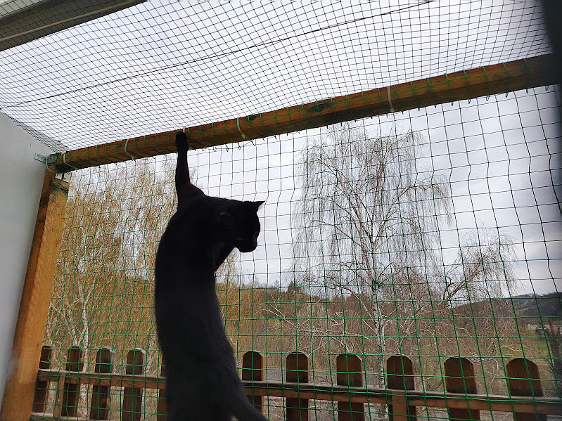 Manžel včera dodělal"oplocení"celého balkonu,protože náš poslední,11 měsíční kocourek přelézal k sousedům.Původní,průhlednou síť roztrhal,tak nová je z pletiva na plot a navíc je zadělaný i vrch nad šňůrama.Darebníček byl nemile překvapený,že nikam nemůže a já můžu mít konečně otevřený balkon bez obav z toho,že by havaroval ze 4 patra🙂Mějte se moc hezky