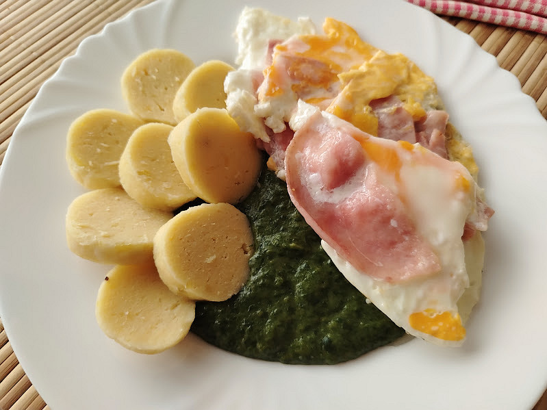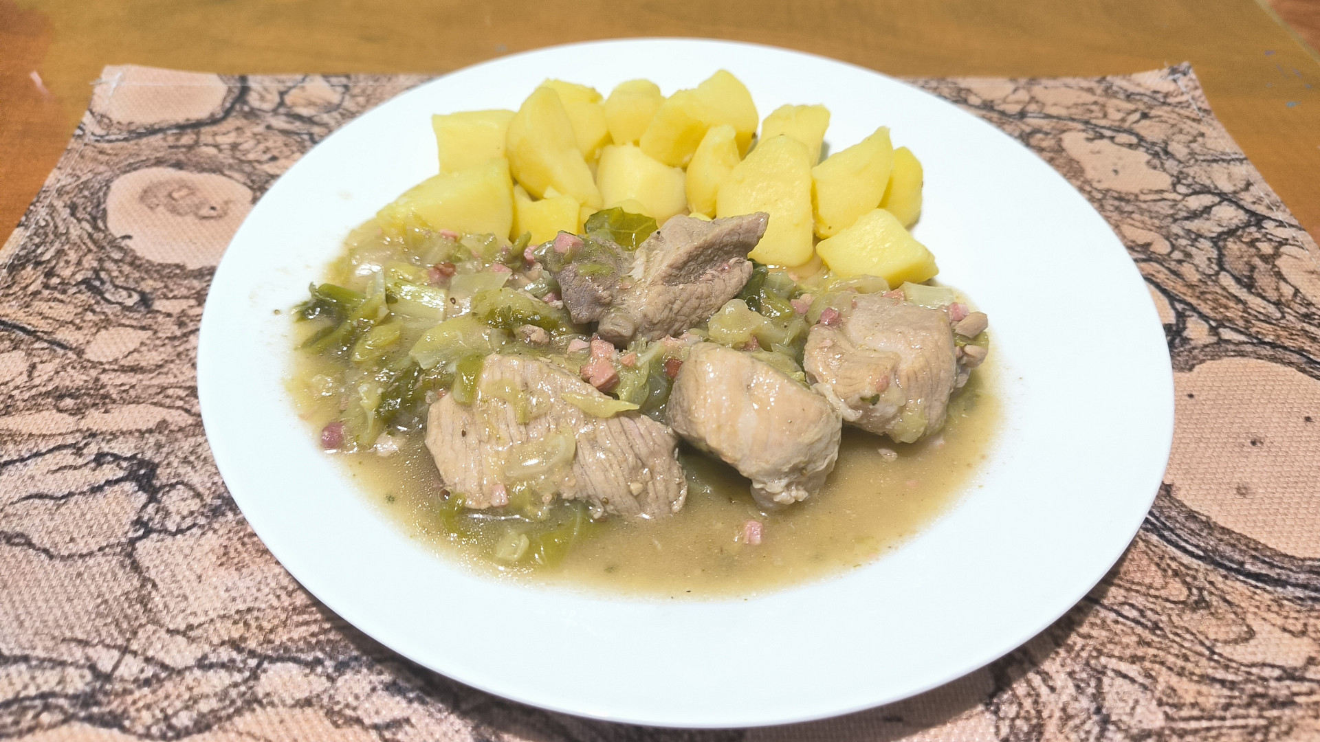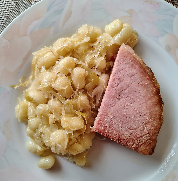 u nas polevka od vcera, gnocchi, kysele zeli a uzene. Dezert byl kavovy jogurt.