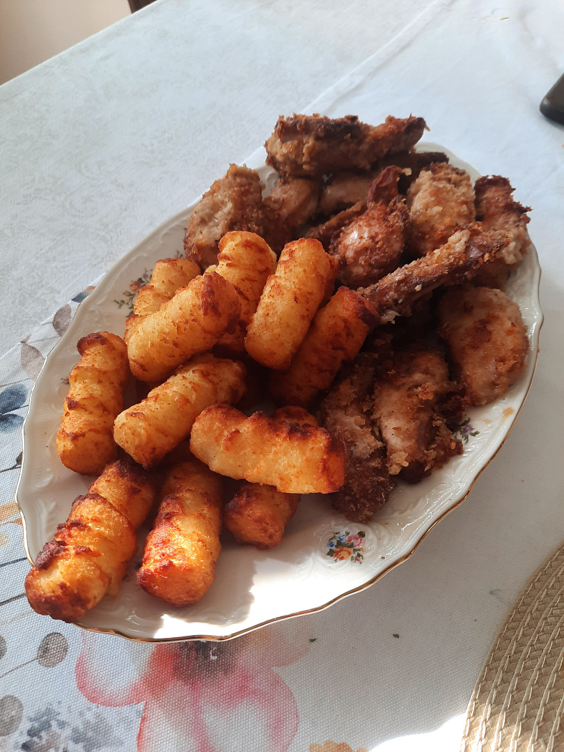 K obědu jsem usmažila ještě naložené řízečky a dojedl se salát.