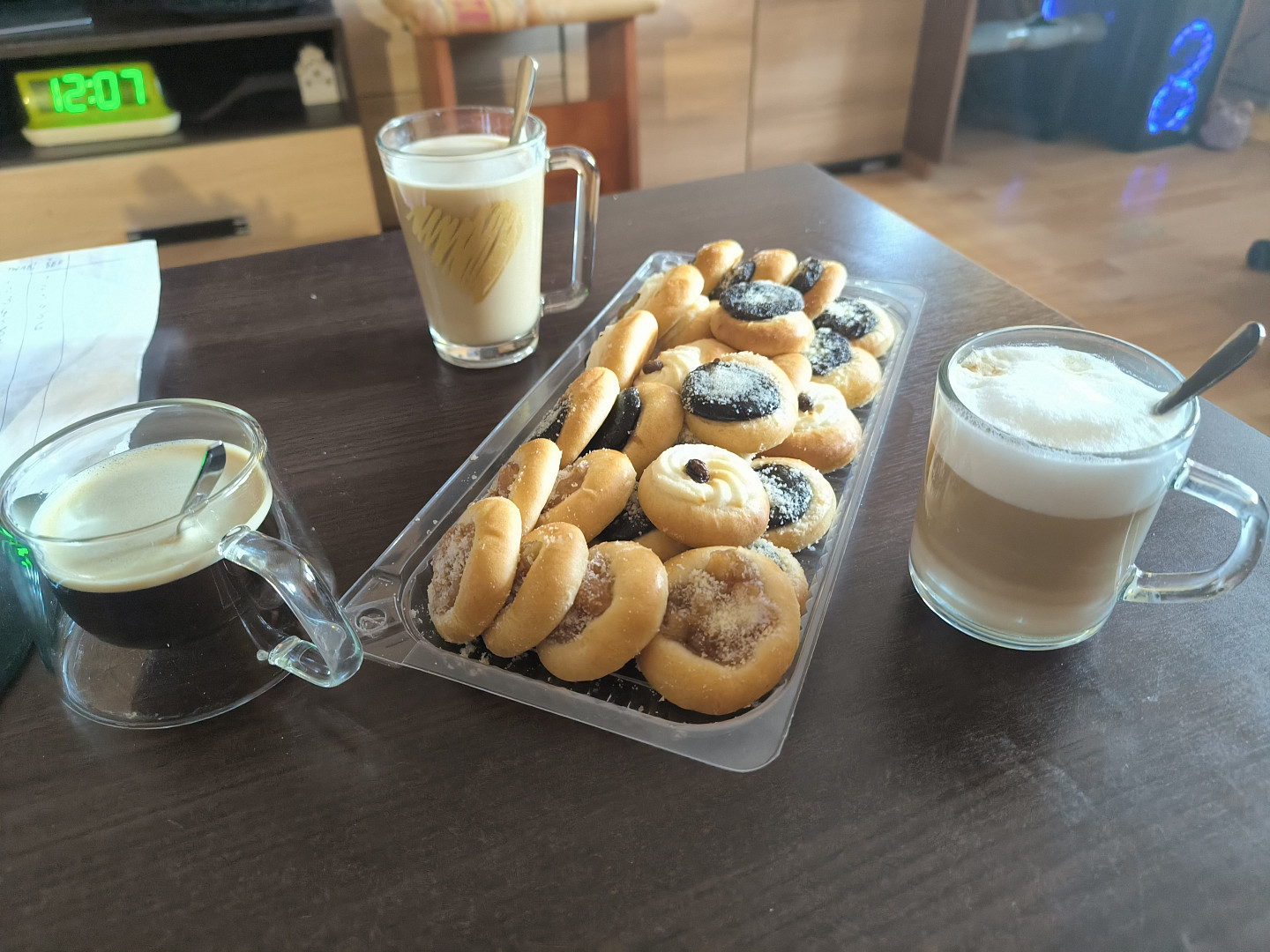 A v tuhle dobu jsou 4 koláčky, které si manžel schoval k snídani. Já neměla žádný. A ani jeden chlebíček 😀