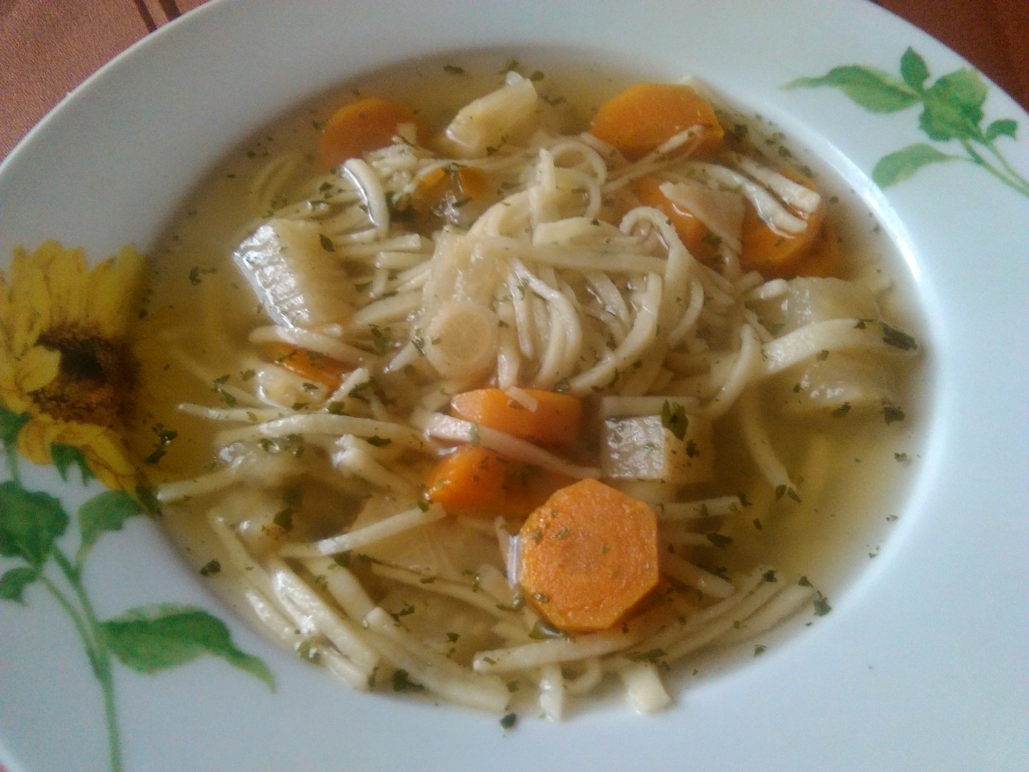 Na dnes a zítra mám hovězí polévku s domácími nudlemi.A zapomněl jsem si vyndat z mrazáku vepřové koleno,tak ho peču teprve teď, dělám ho na kysaném zelí.
