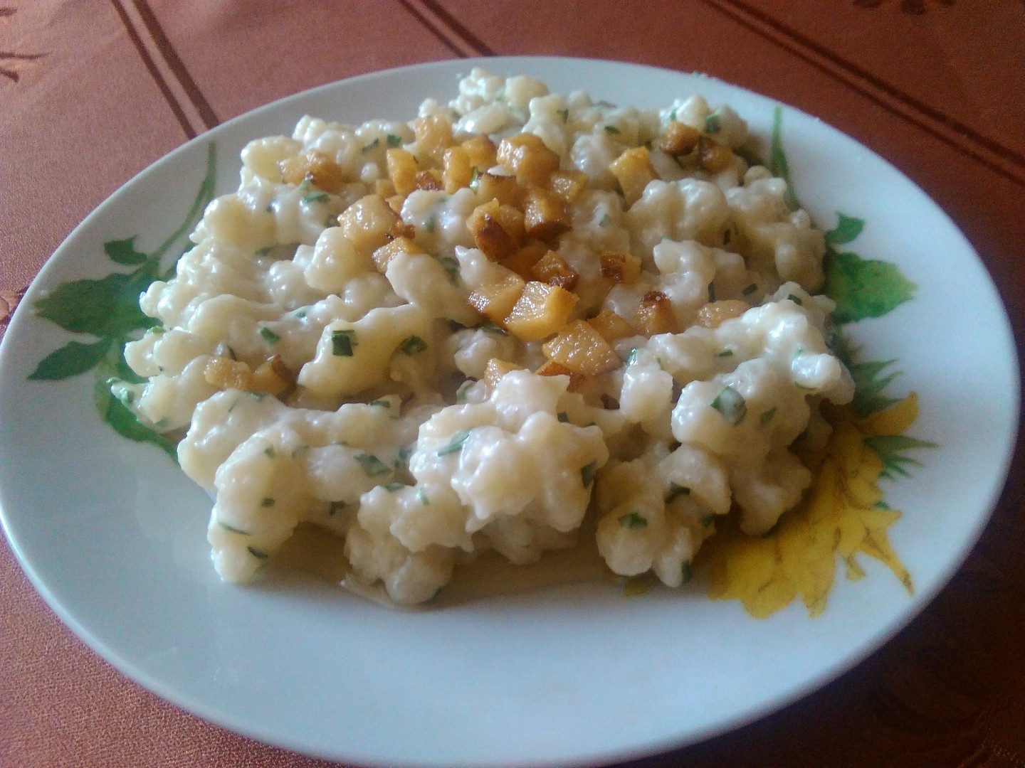 U nás dnes bude opékaný krkovičkový plátek, brambory, ledový salát, gulášová polévka a na zítra uvařím kuřecí kousky v sýrové omáčce s těstovinami.