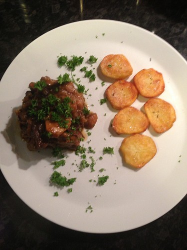 u nas byly v sobotu kureci stehenni rizky na houbach a vcera zapecene kruti maso s kedlubny, brambory a zakysanou smetanou.