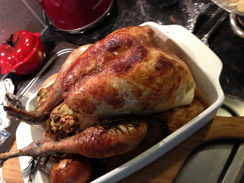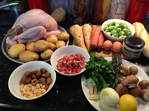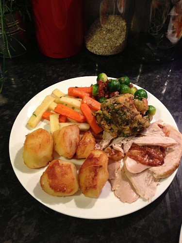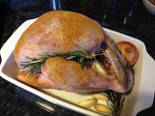 My dnes odlitame na rodinne vanoce na Slovenske hory a tak jsme meli predcasny anglicky vanocni krocanovy obed uz vcera. Myslim, ze za skoro 2 dekady zde se mi podaril temer k dokonalosti, pravda, nadivku jsem si trosku "pocestila" po babiccine videnskem receptu