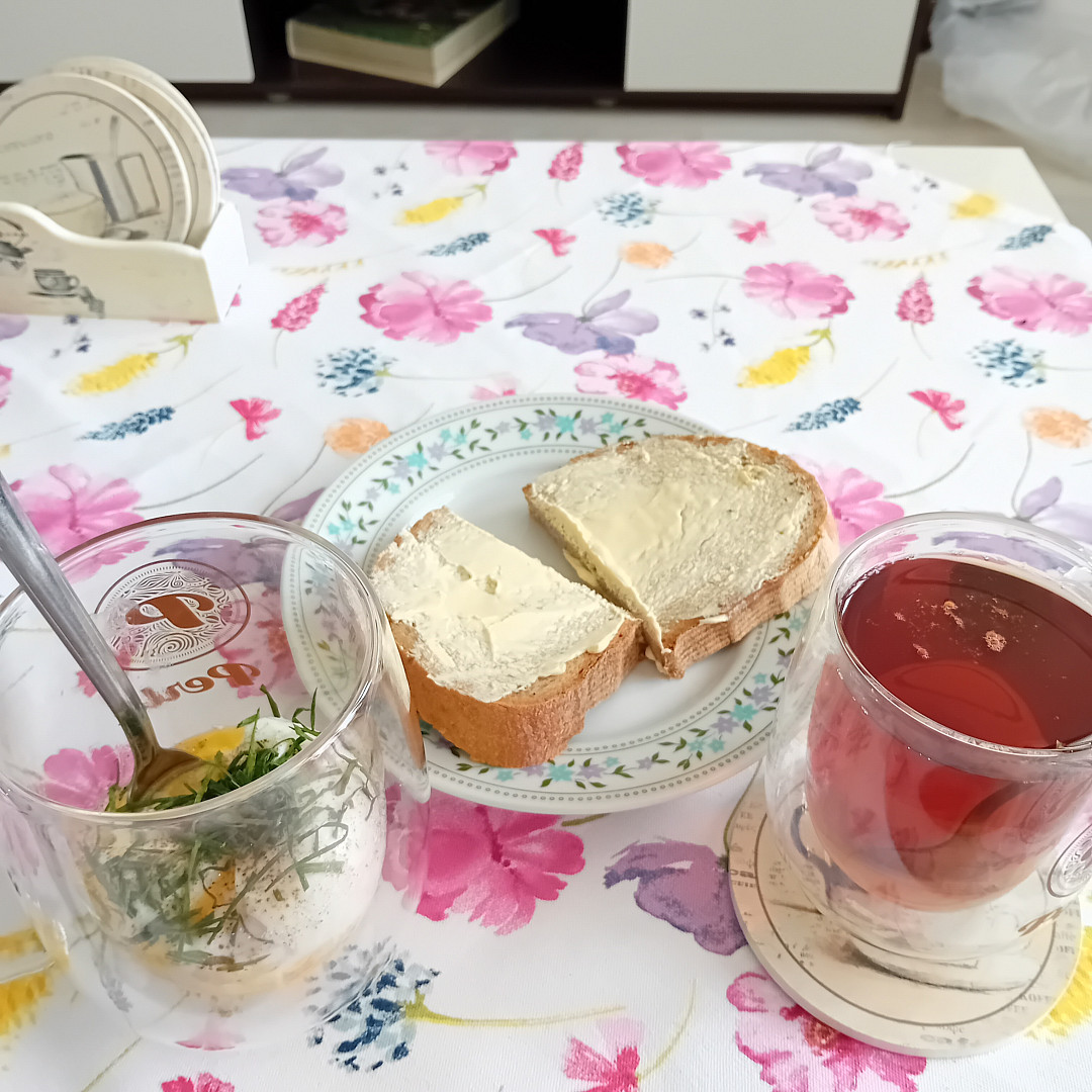 K obědu byl květák v těstíčku s bramborem, zelenina, tatarka, a teď jsem dodělala mísu tataráku, mladí se šli projít, pak bude svačina. Ještě dorazí druhá vnučka s přítelem, bude stříhat manžela i syna.
