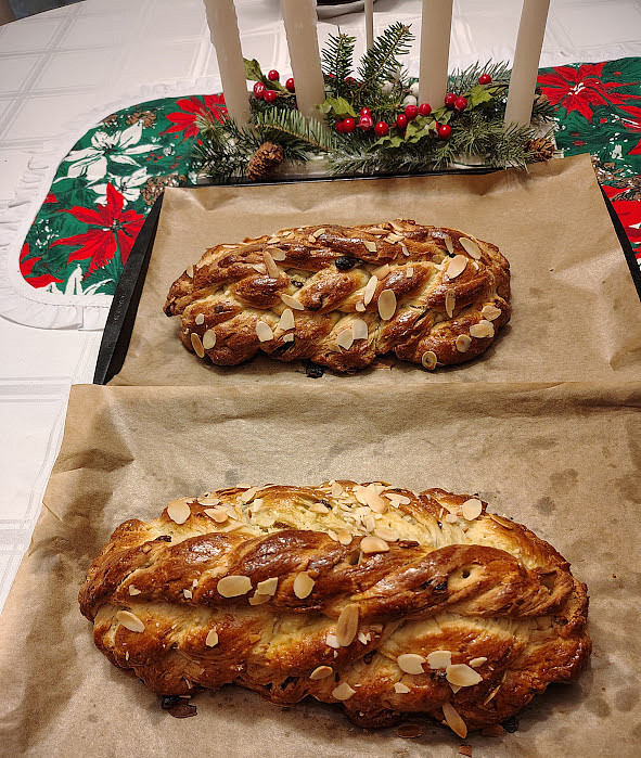 Dve vanocky upecene, treti udelam nez pojede dcera domu. Zrovna se me nejak nepovedli s tim pletenim. Delam je vzdy takto a nejak me to dnes neslo. No vim ze se snedi a na vystavu nejdou😁