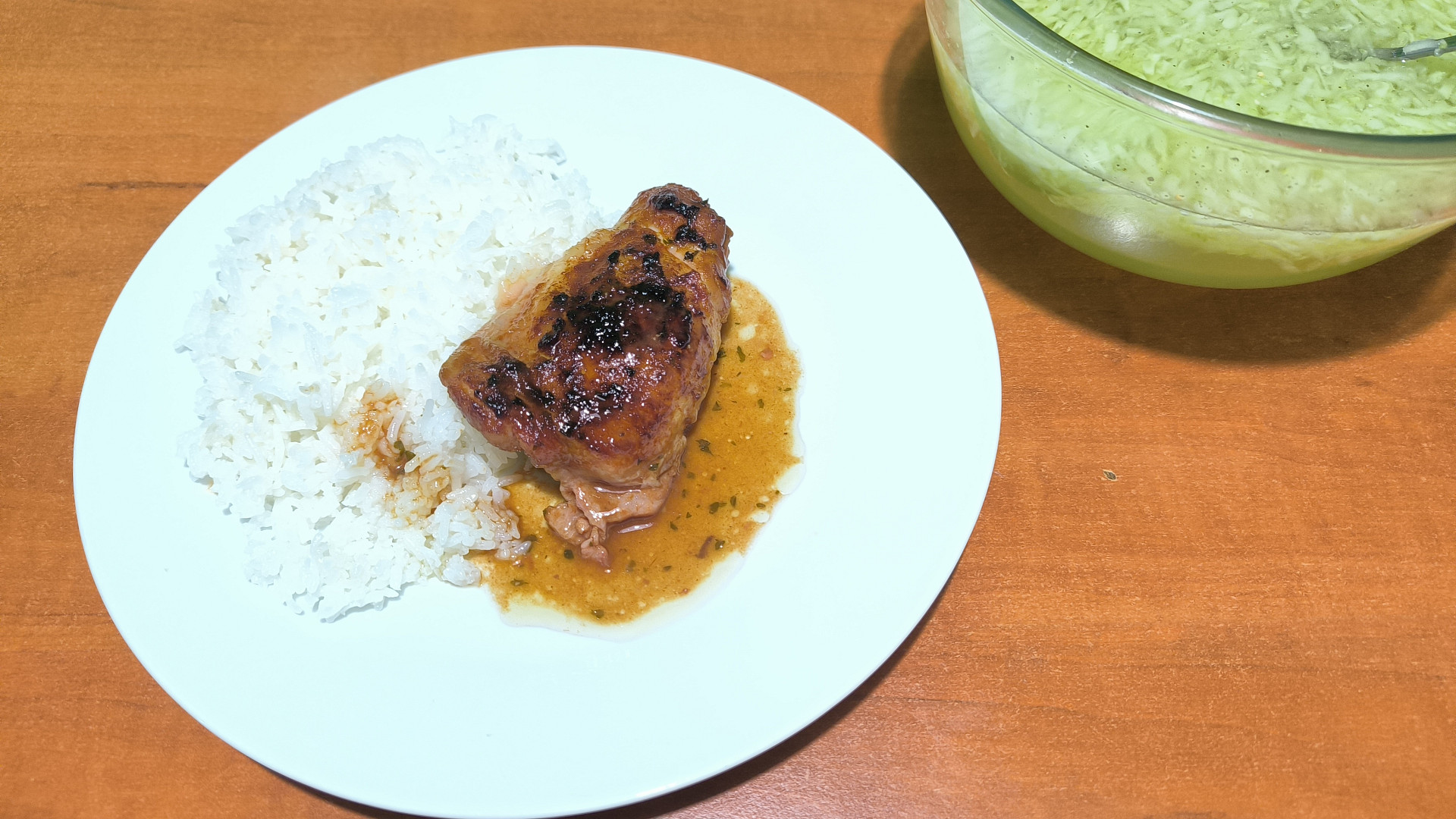 Dál tropické kuřátko s rýží a okurkový salát 👍