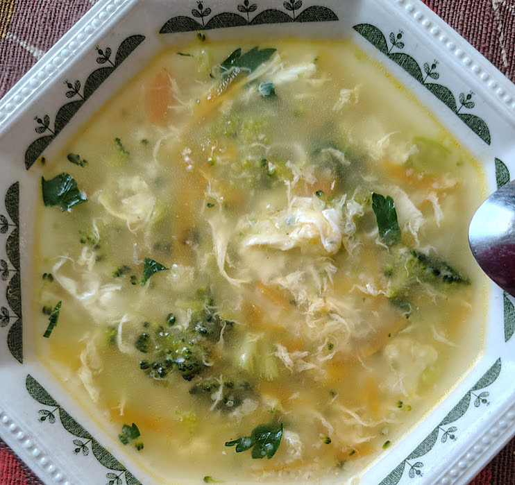 u nas zeleninova polevka s krupickou a vajickem,rizeto z hnede ryze a zeleny salat.